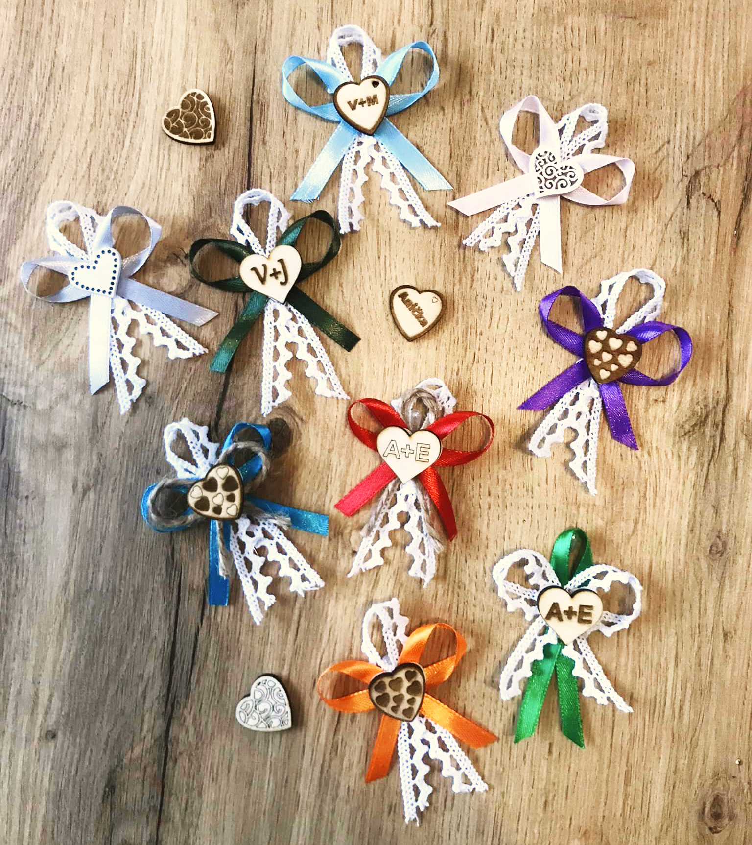 Věříme, že naše svatební vývazky s vypalovanými srdíčky na přání přinesou radost a půvab do vašeho svatebního, ale i jinak výjimečného dne.